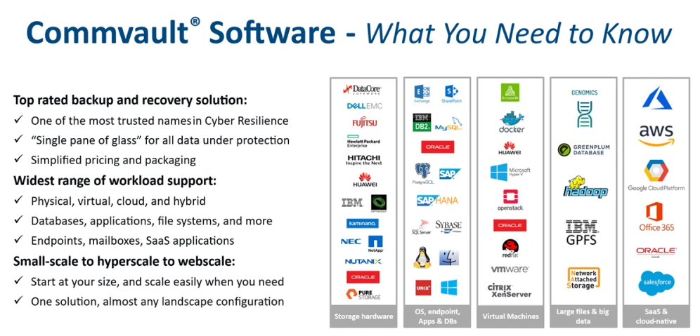 Our close collaboration with Commvault keeps us in lockstep with the platform’s latest developments and best practices, helping you streamline decision-making and save time and money. We provide end-to-end services, including installations, health checks, break/fix support, consulting, and long-term project assurance to optimize your Commvault environment.